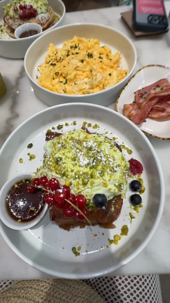 The vibe in the cafe was so relaxing and the waiter was very nice and welcoming. The pistachio French toast felt like it was out of the world. It was the best French toast I have ever eaten